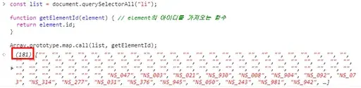 Array.prototype.map.call(list, getElementId); //유사배열의 요소들을 배열의 요소처럼 사용할 수 있게 함