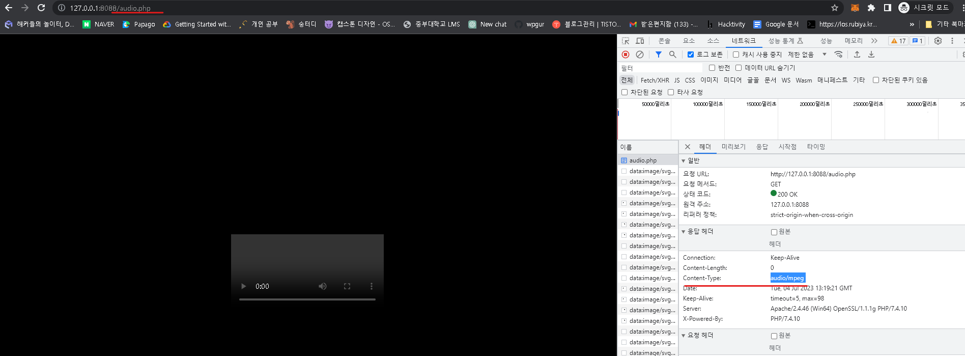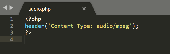 다음과 같이 php에 header('Content-Type: audio/mpeg'); 를 입력하여 header를 설정해준다.