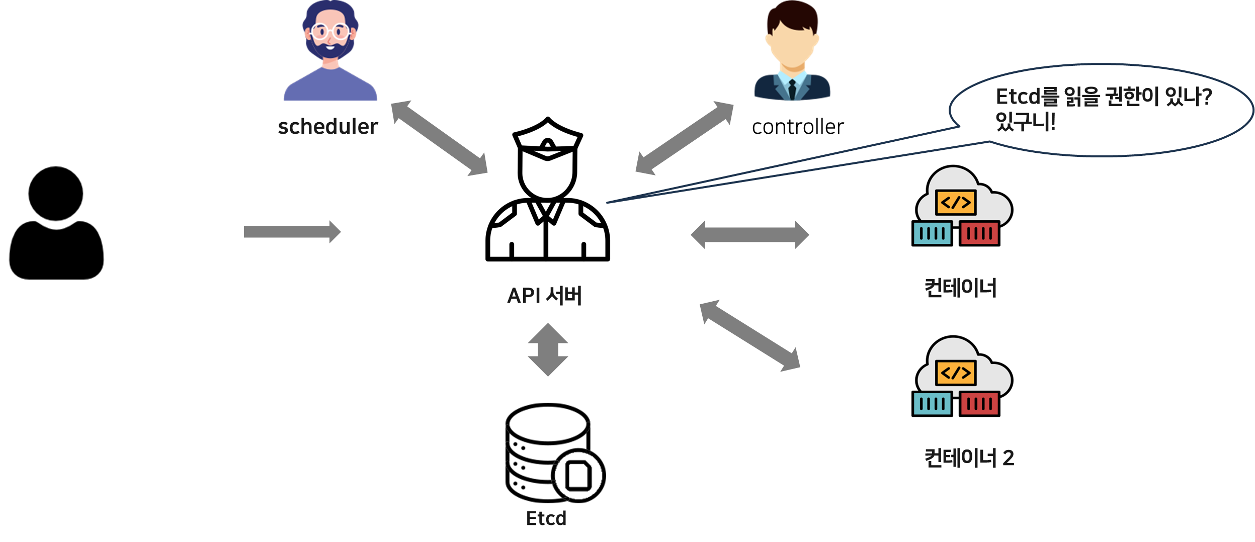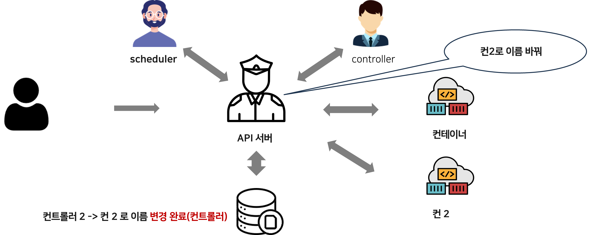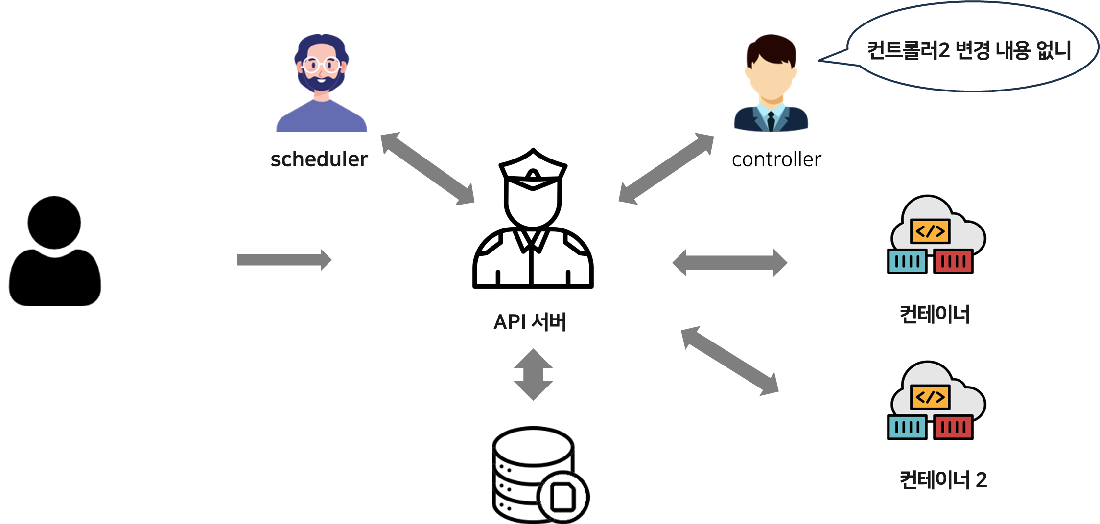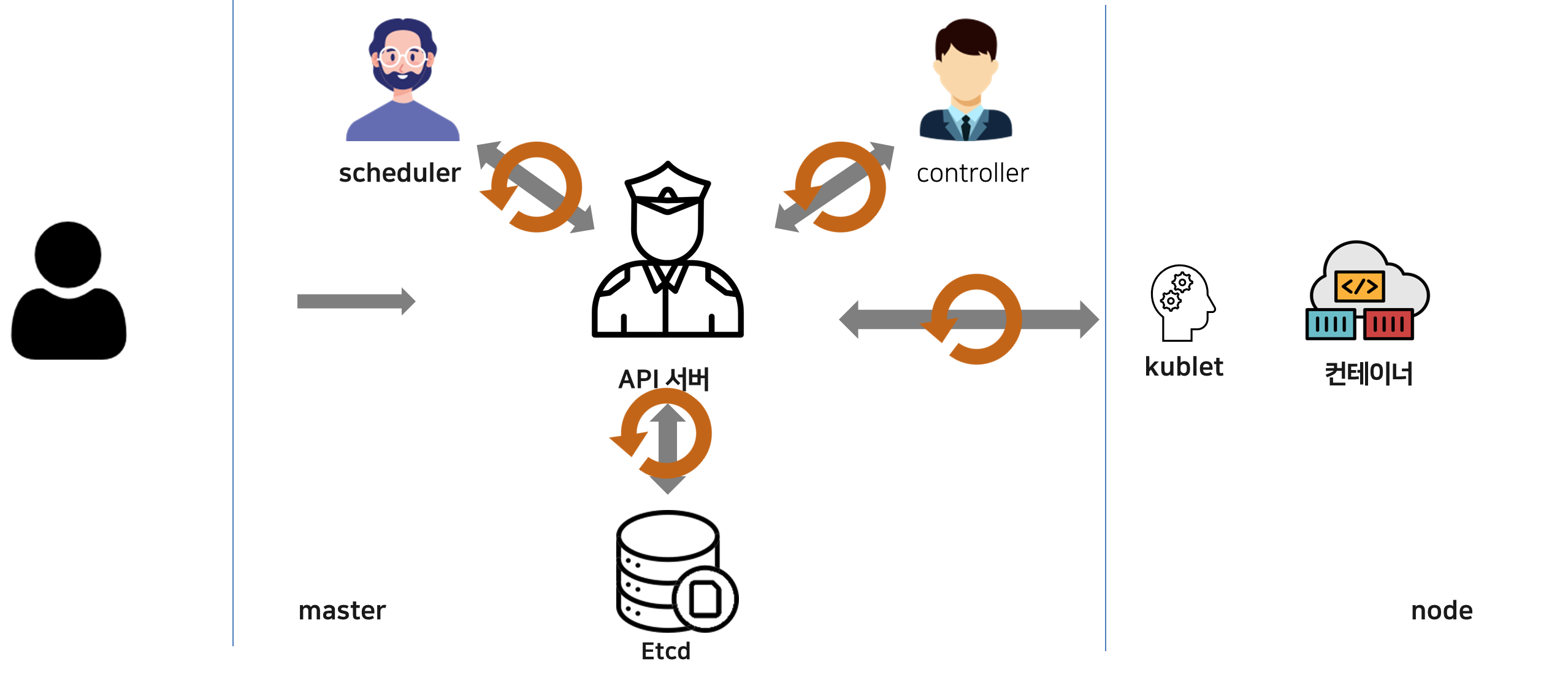 - 사용자의 명령을 받은 API 서버는 행위를 기록하는 etcd에 기록하면서 명령을 수행한다.