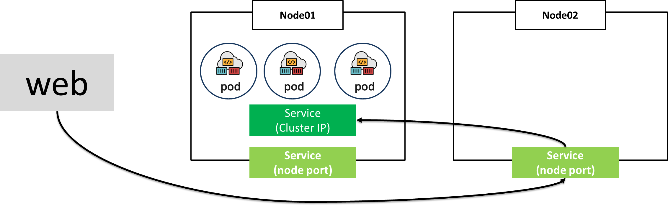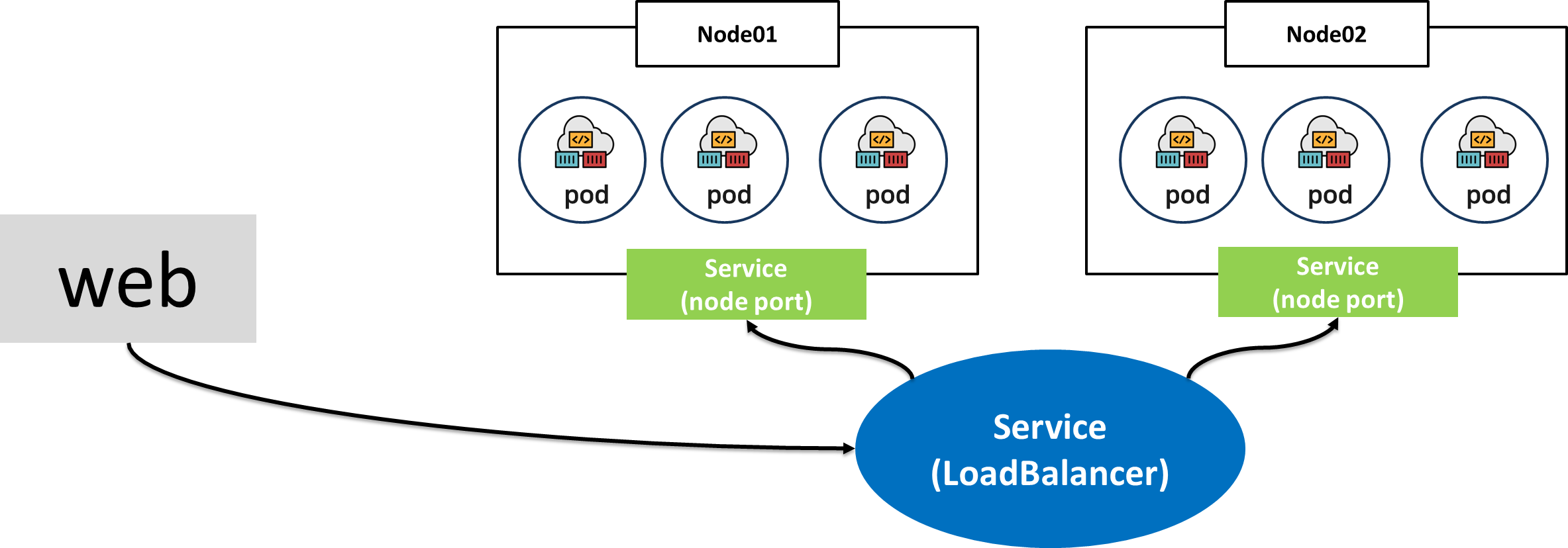 • node port에 접근하려 하는데 하나가 장애가 있다면 다른 node로 접근할수 있게 분산 시키는 로드벨런서가 있음