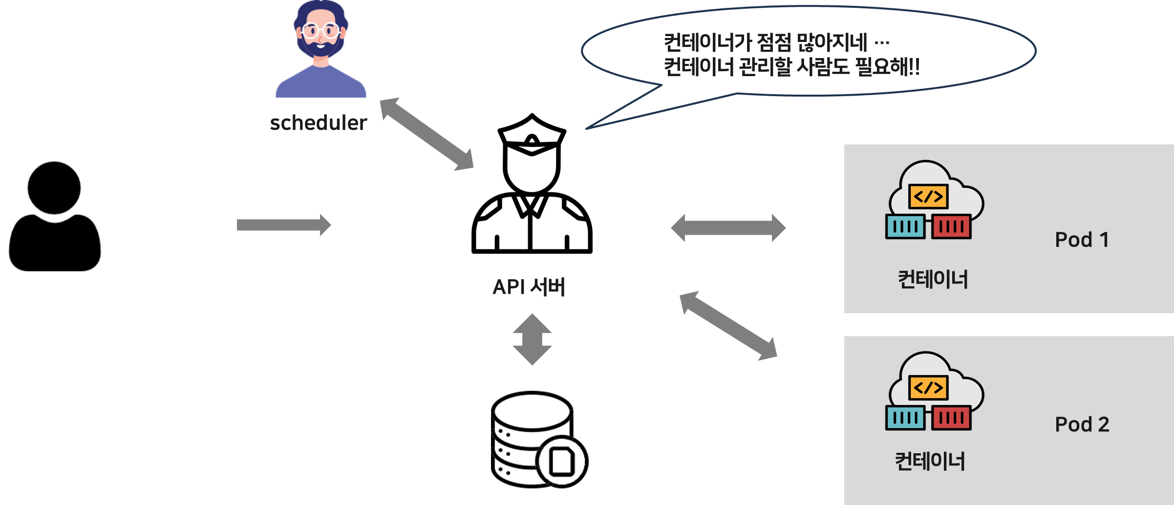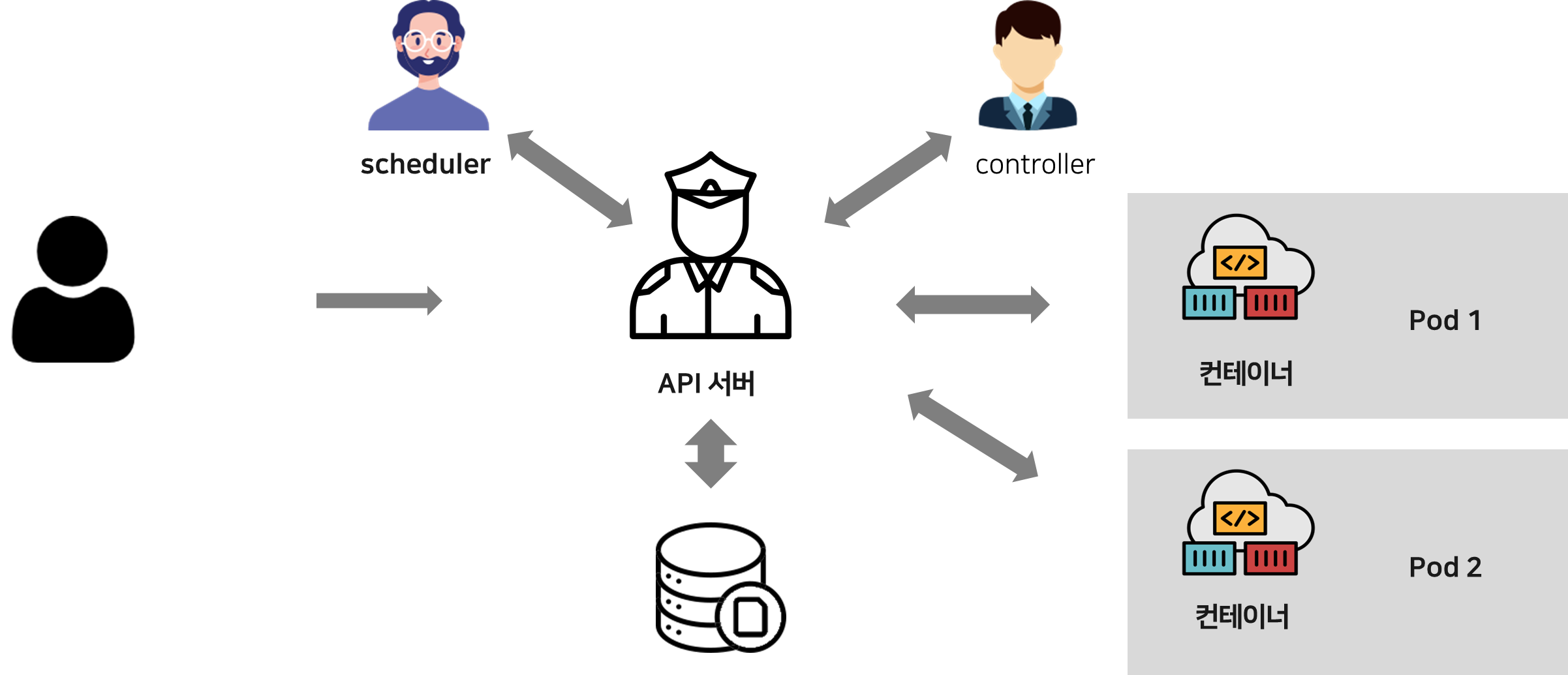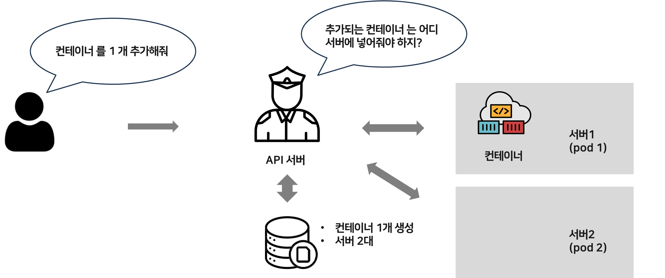 - 사용자는 직접적으로 컨테이너를 생성하지않고 API 서버를 통해서 명령을 내리게 된다.