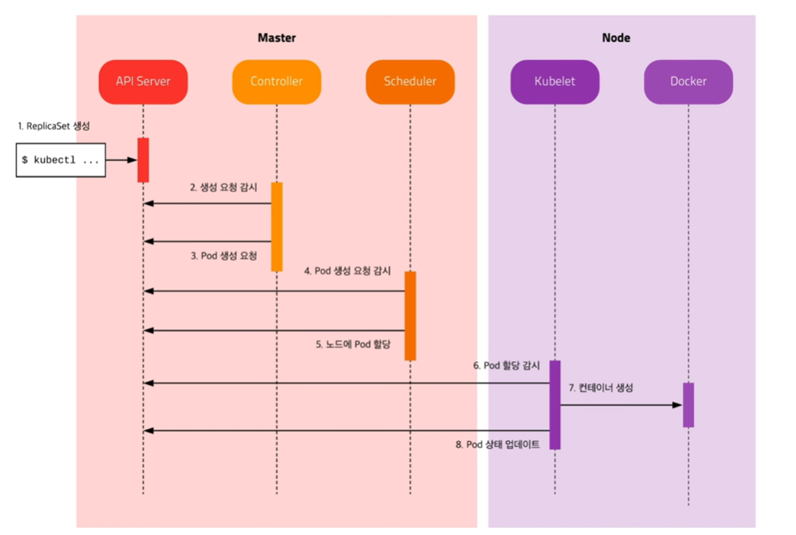 - 스케줄러 및 컨트롤러 kublet들은 계속 API 서버와 소통하며 변화를 감지하고 명령을 수행하게 된다.