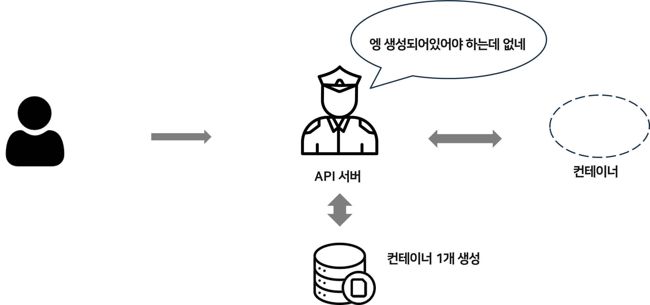 - 이때 API 서버는 컨테이너의 상태를 지속적으로 etcd와 비교 하며 이상이 없는지 확인한다.
