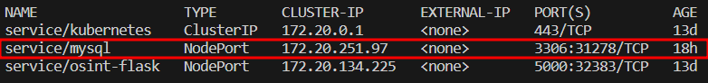 'mysql' 서비스는 각 노드의 31278 포트를 통해 클러스터 외부에서 접근할 수 있다.