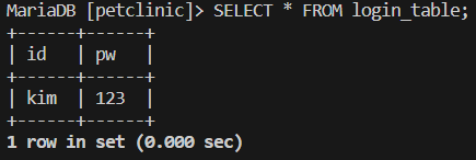 cursor.execute("INSERT INTO login_table (id, pw) VALUES (%s, %s)", (id, pw))