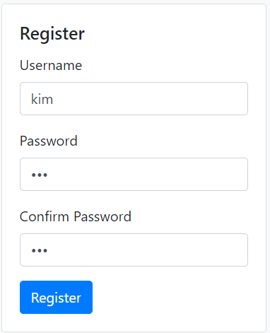 id=kim, pw=123 지정