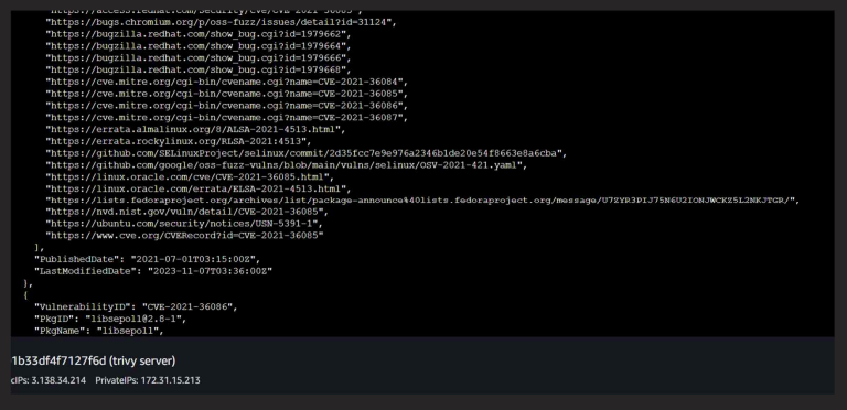 trivy image --format=json --output=설정할 이름.json imagename // JSON파일 형식으로 Trivy 분석 결과 상세 정보 뽑아줌