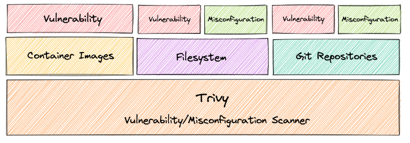- Trivy는 컨테이너 및 아티팩트에 대한 취약성 및 잘못된 구성정보에 대한 검사 도구