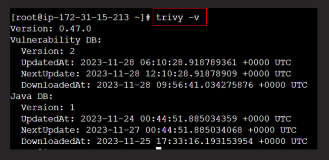 rpm -ivh https://github.com/aquasecurity/trivy/releases/download/v0.47.0/trivy_0.47.0_Linux-64bit.rpm
