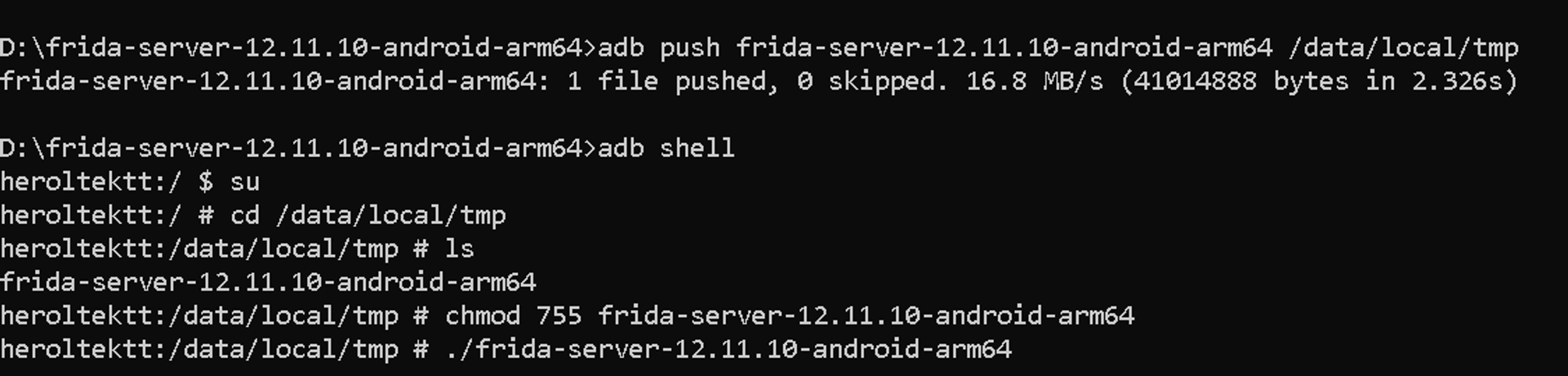 설치후 버전을확인하고 맞는 버전을 다운받아서 https://github.com/frida/frida/releases 파일을 adb push로 넣어준다.