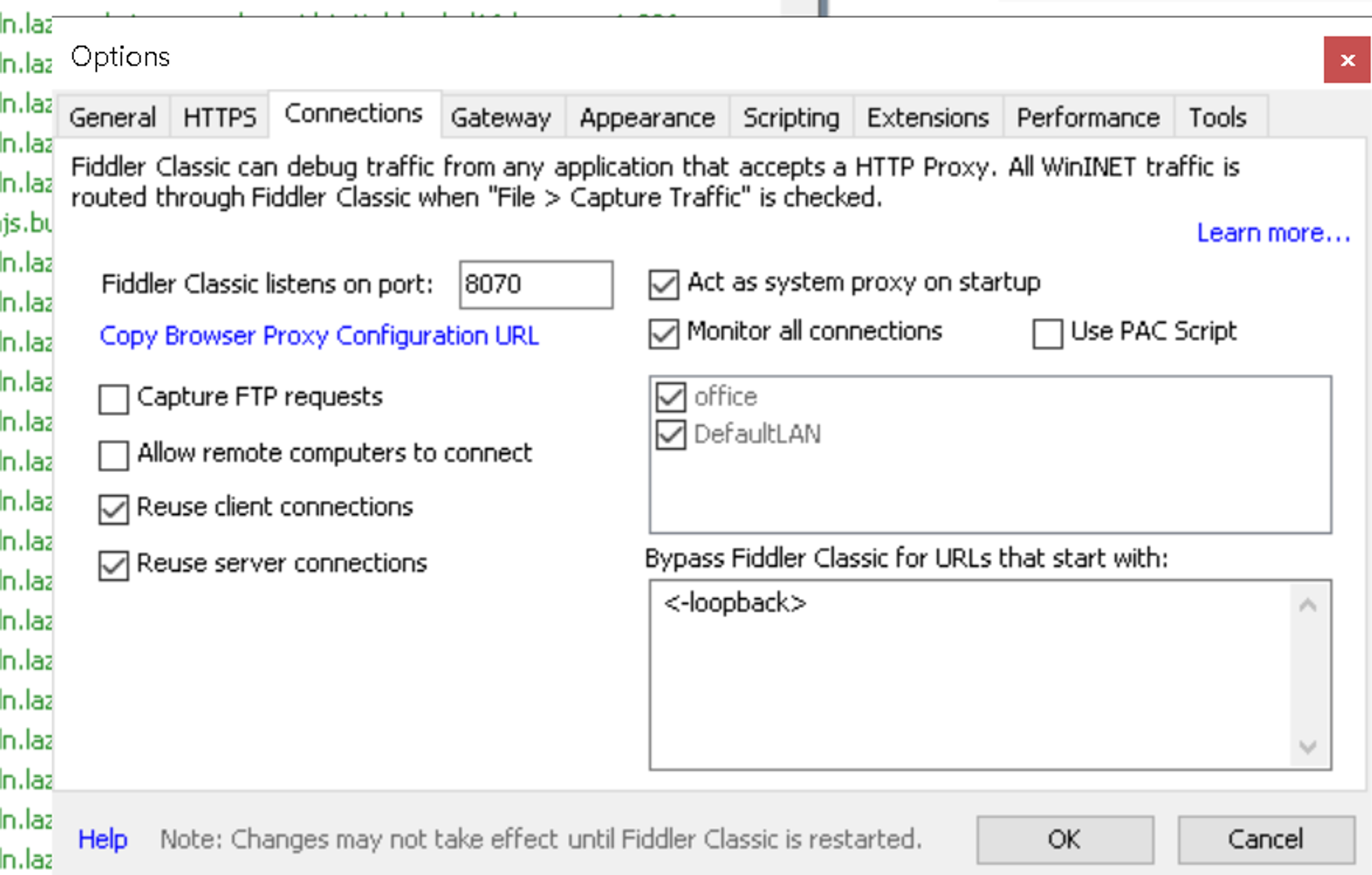 이후 fiddler에서 프록시 설정할때 했던 포트를 맞춰준다.