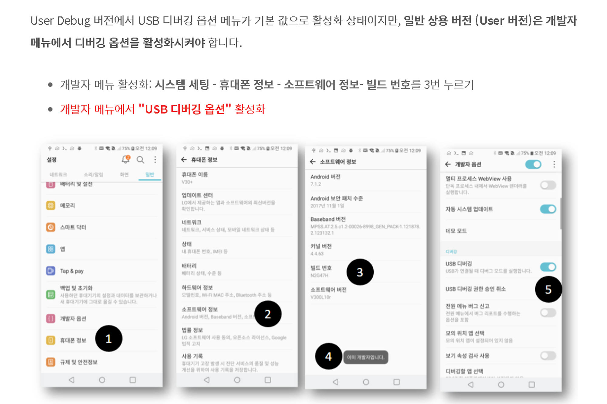 이후 안드로이드 앱에서 개발자 모드를 설정해준다.