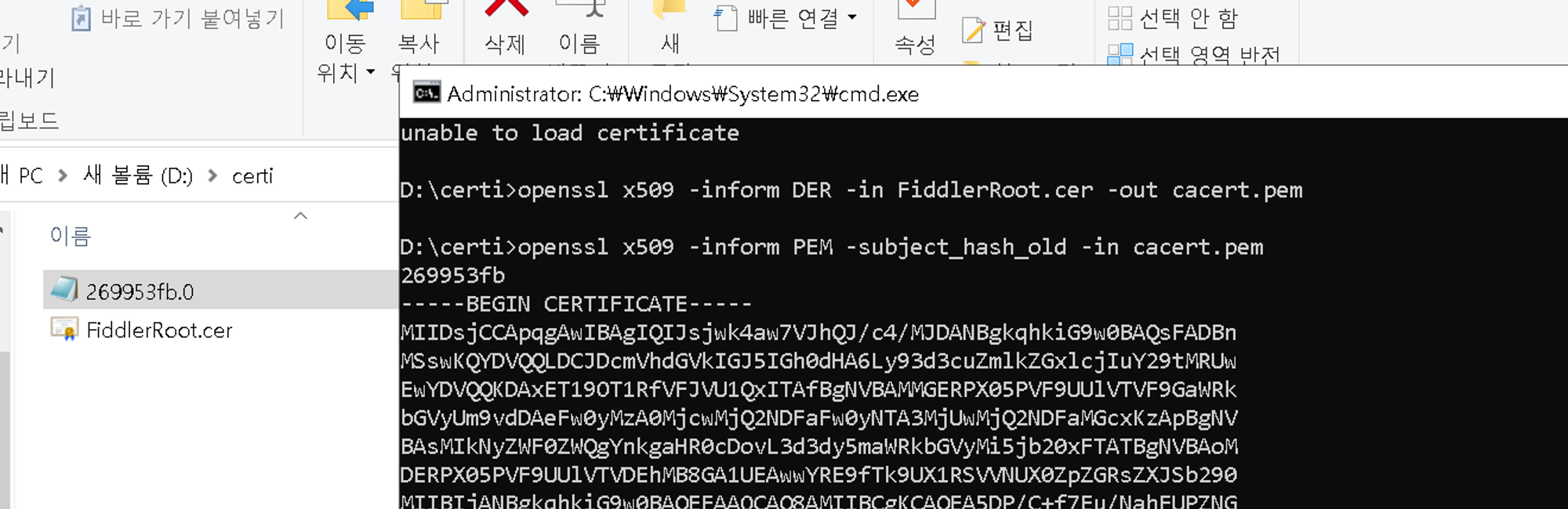 • openssl 을 통해 인증서 해시값을 추출한다.