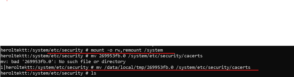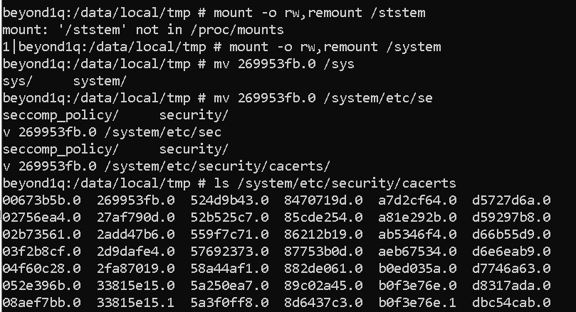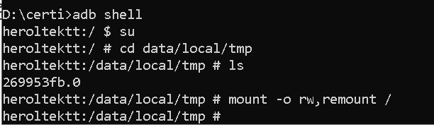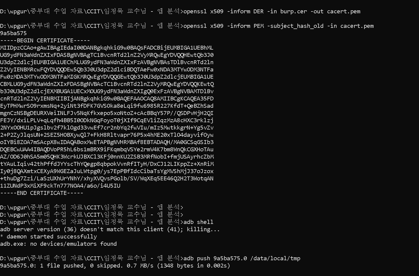 1. 인증서 다운 이후 시그니처 확인해서 이름 변경 후 adb push로 내부 설치