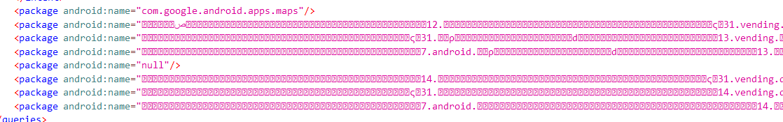 W: D:\wpgur\APK+Easy+Tool+v1.60+Portable\1-Decompiled APKs\certapp\AndroidManifest.xml:74: error: attribute 'android:name' in <package> tag must be a valid Java package name.