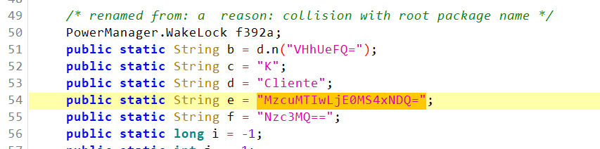 2. 전송되고 있었던 IP를 BASE64로 인코등한뒤 디컴파일 된 코드내부에서 검색