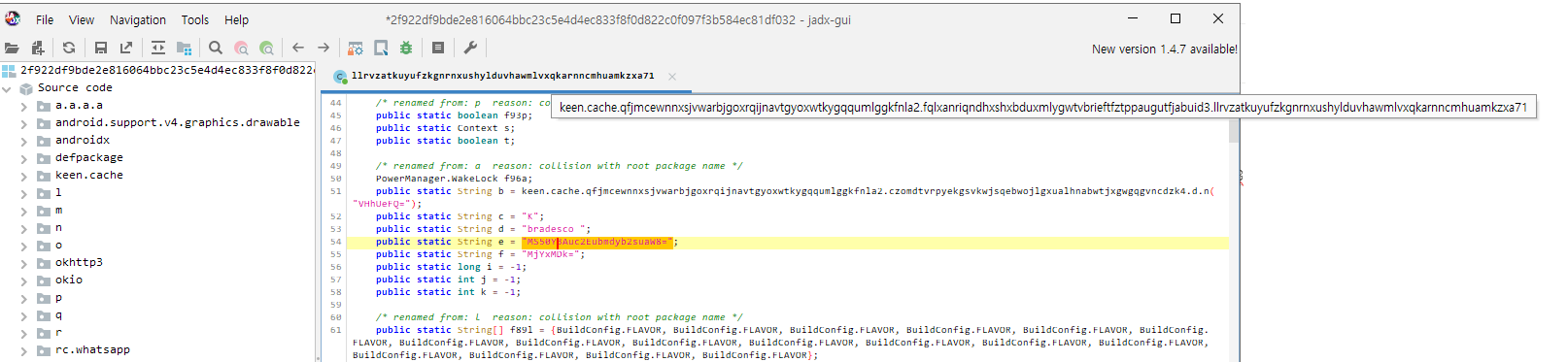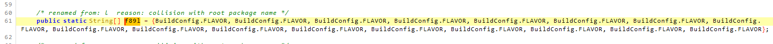분석 결과 저 많은 문자열을 BuildConfig.FLAVOR 로 대체하라는 명령어 였으며 놀랍게도 아무 값 없는 변수 였다…