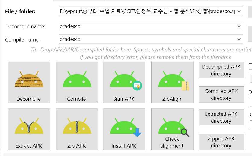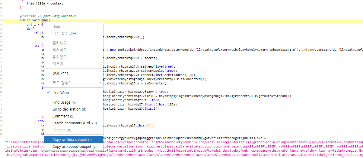 이후 apk easy tool을 사용하여 apk를 디컴파일했고 해당 코드 부분을 수정해주었다.