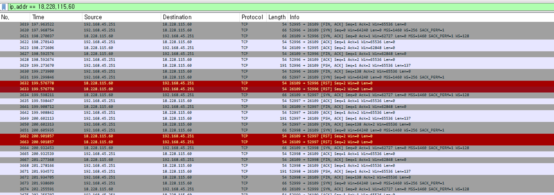 기존의 악성앱에서는 보내지는 서버가 닫혀있어 3-way 핸드쉐이크가 아뤄지지 않았지만 서버를 토드 수정으로 변경해줬더니 전송 되는것을 확인할 수 있었다