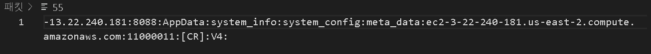 다만 실제 보내지는 값에는 13.22.240.181:8088:AppData:system_info:system_config:meta_data:ec2-3-22-240-181.us-east-2.compute.amazonaws.com:11000011:[CR]:V4: 다음과 같이 v4 이후의 값이 전달 되지 않았는데 이후 문자열 코드를 분석해 보았다.