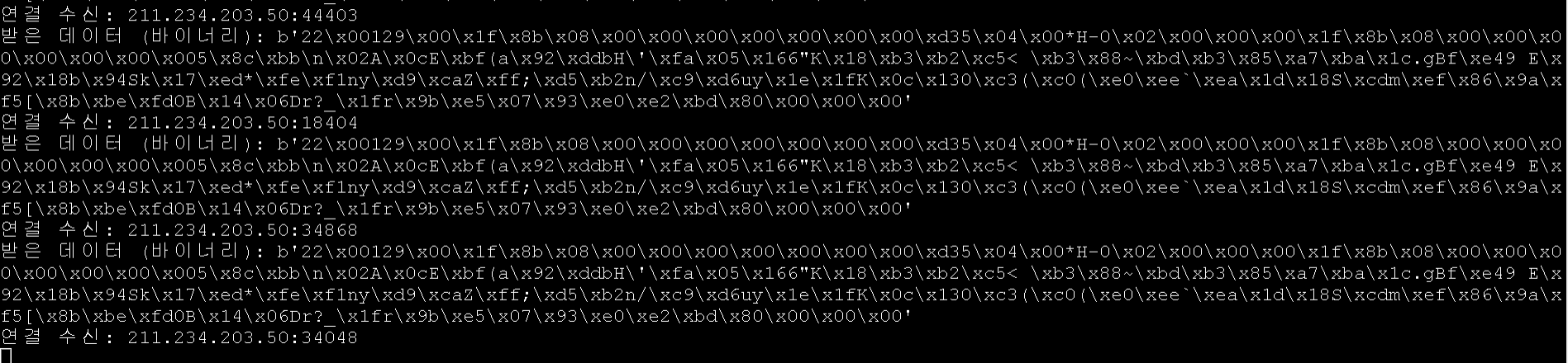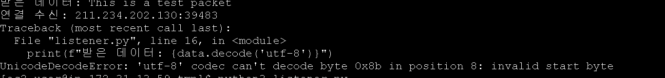기존에 생성한 서버의 리스너 코드를 통해 데이터를 받으려했지만 utf-8로 디코딩이 안되는 이슈가 있었으며