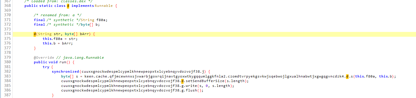 .czomdtvrpyekgsvkwjsqebwojlgxualhnabwtjxgwgqgvncdzk4.d.f31a.execute(**new** d(str, bArr)) 다음과 같이 d 인스턴스를 생성해ThreadPoolExecutor에서 execute를 해주게 되는데