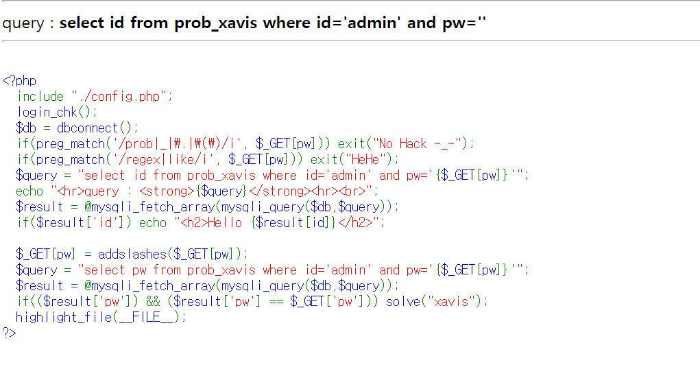 pw에 "prob" , "_" , ".","regex","like" 를 피해 id에 값이 들어있으면 Hello {id} 값이 출력되고 이 id값에 admin 값이 들어가면 문제가 풀린다.