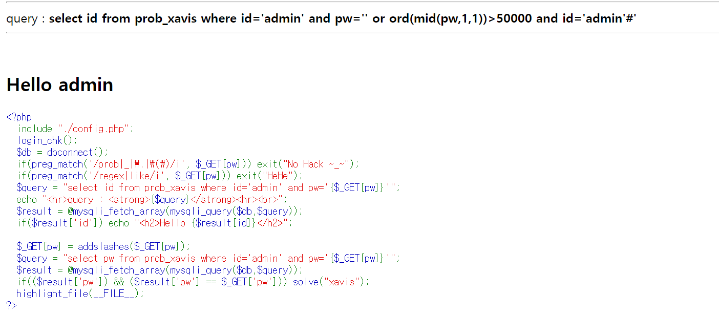 결국 blind injection으로 알아낸 admin의 pw값을 정확히 입력해줘야 문제가 풀린다.