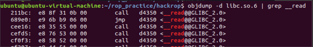 read write system의 offset들은 objdump -d libc.so.6 | grep __read 같이 구한다